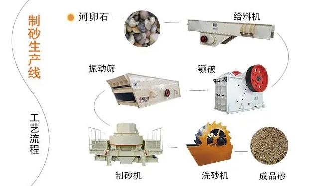 制砂設(shè)備:經(jīng)過粗、細(xì)碎后的河卵石,符合要求的